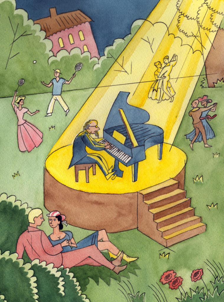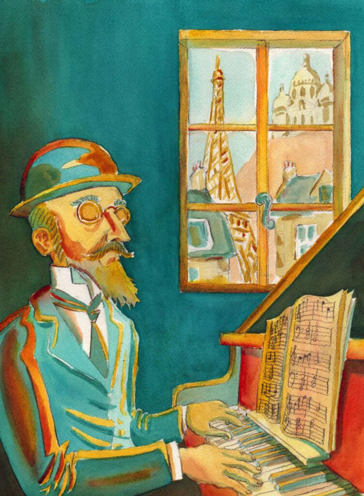 Dans cet ouvrage fait entièrement d’aquarelles peintes à la main, Jean Faure Beaulieu restitue le lien étroit qui unit Erik Satie à la peinture. Il y retrace toute la vie du compositeur pour rendre perceptible cette dimension visuelle et la mettre en regard des œuvres des grands peintres comme Picasso et Picabia avec lesquels le musicien aura tout au long de sa vie collaboré. »